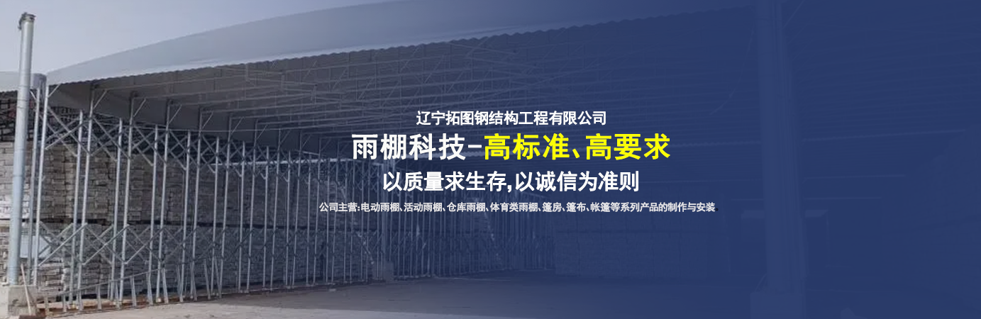 遼寧拓圖鋼結(jié)構(gòu)工程有限公司是一家專業(yè)從事推拉篷設(shè)計(jì)、制作、安裝、使用、維修的綜合性公司。公司主營:電動(dòng)雨棚、活動(dòng)雨棚、倉庫雨棚、體育類雨棚、篷房、篷布、帳篷等系列產(chǎn)品的制作與安裝?! ?nbsp; 遼寧拓圖鋼結(jié)構(gòu)工程有限公司堅(jiān)持以市場為導(dǎo)向,以科技創(chuàng)新為動(dòng)力,以質(zhì)量求生存,以誠信為準(zhǔn)則,倡導(dǎo)求實(shí)、進(jìn)取、創(chuàng)新的企業(yè)精神。“科學(xué)的管理、嚴(yán)謹(jǐn)?shù)脑O(shè)計(jì)、 的制作安裝、嚴(yán)格的質(zhì)量檢測、良好的后期服務(wù)成就企業(yè)的信譽(yù),為您提供優(yōu)質(zhì)服務(wù)?! ?nbsp; 遼寧拓圖鋼結(jié)構(gòu)工程有限公司傾力于開發(fā)應(yīng)用三維空間結(jié)構(gòu)與新材料的結(jié)合,將廣告藝術(shù)視覺表現(xiàn)形式與張力膜材科學(xué)的結(jié)合,推出多彩推拉蓬,依靠先進(jìn)的科學(xué)技術(shù),將推拉蓬建筑表現(xiàn)形式無限延伸,立志走在建筑科學(xué)的前沿,引導(dǎo)建筑時(shí)尚潮流,我們的目標(biāo)是使推拉蓬建筑在中國發(fā)展壯大?! ?nbsp; 遼寧拓圖鋼結(jié)構(gòu)工程有限公司憑著極強(qiáng)的事業(yè)熱情和豐富的專業(yè)經(jīng)驗(yàn)以“勤勉進(jìn)取、銳意創(chuàng)新、至誠至信”的精神使公司得到迅速健康發(fā)展,業(yè)務(wù)范圍遍及全國??茖W(xué)的管理、嚴(yán)謹(jǐn)?shù)脑O(shè)計(jì)、高標(biāo)準(zhǔn)的制作安裝流程,嚴(yán)格把控產(chǎn)品質(zhì)量,熱誠的售后服務(wù)是企業(yè)競爭力的源泉?! ?nbsp; 遼寧拓圖鋼結(jié)構(gòu)工程有限公司人愿以最誠摯的態(tài)度,歡迎廣大客戶的蒞臨與溝通!愿為市場提供優(yōu)...